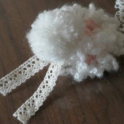 ゴムに髪が負けて上手く結べない髪の少ない子用に細ゴムを2重にして作りました。毛糸のポンポンに、ピンクと白のシュシュ、レースで、可愛らしい小さなシュシュです。ピンクの細ゴムを使っていて、ゴムが見えても可愛いです。