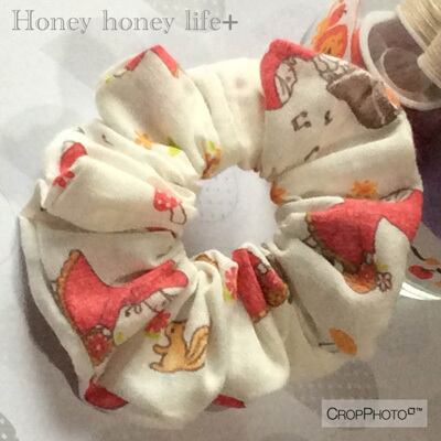 サイズ 8cm(商品の最大の直径) 赤頭巾ちゃんがプリントされたとても可愛い奇異で作りました。お子様にぴったり!普通の太さのゴムを使っているので、伸縮性があります。
